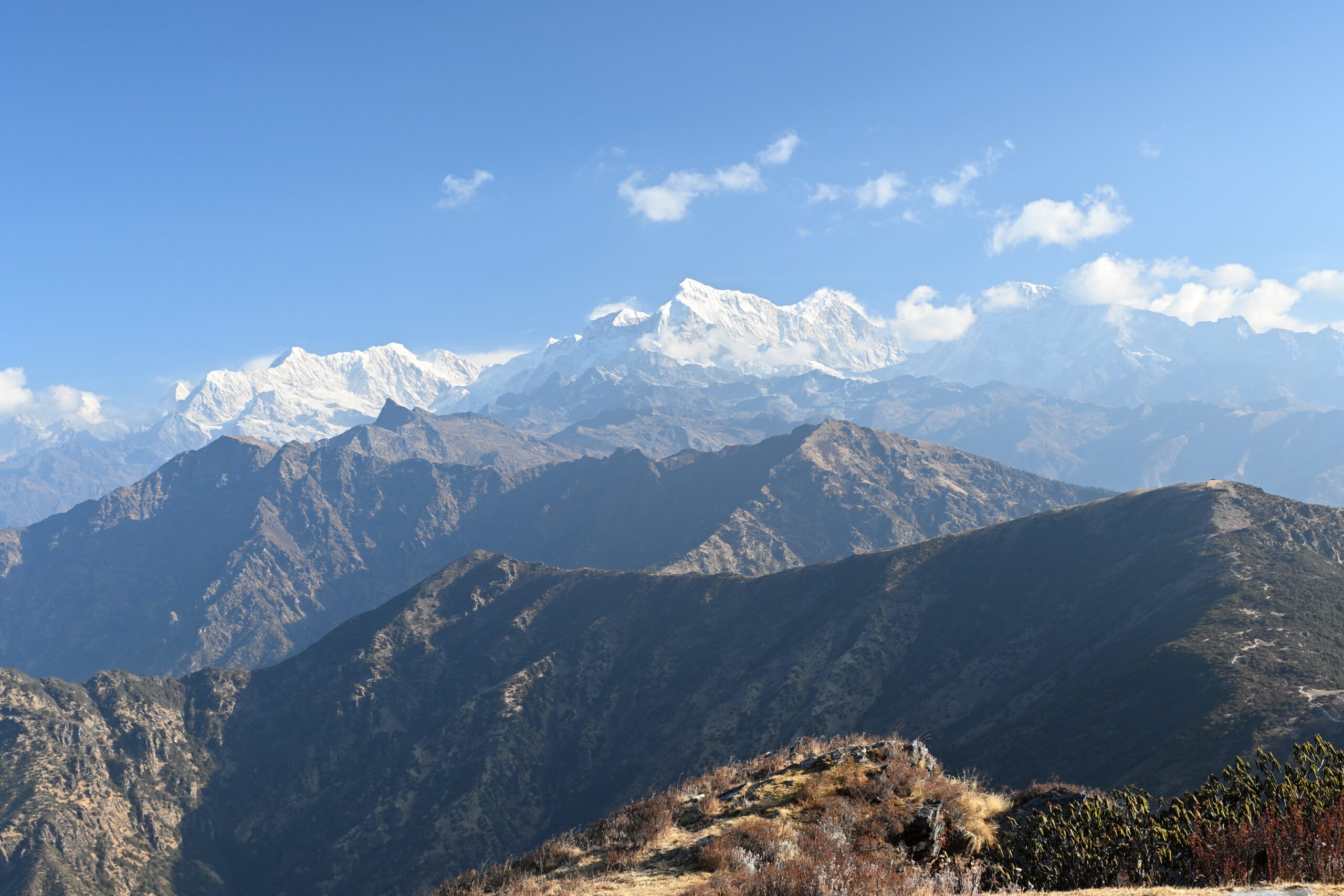 Wir stehen früh auf, um zum Sonnenaufgang auf dem Pikey Peak II (ca. 4000m) zu sein. Bei guten Sichtverhältnissen kann man von hier eine Reihe berühmter Himalayariesen sehen: vom Kanchenjunga im Osten über Makalu und Everest bis hin zu Gaurishankar und Dhaulagiri im Westen. Wir steigen ab über Almwiesen und Bergwälder nach Junbesi. Übernachtung in einer Lodge.